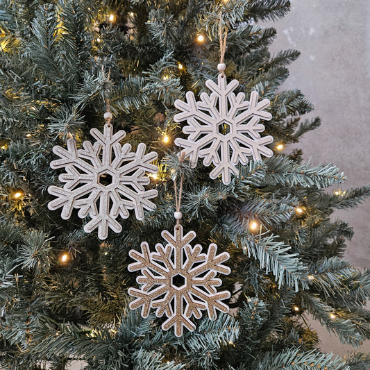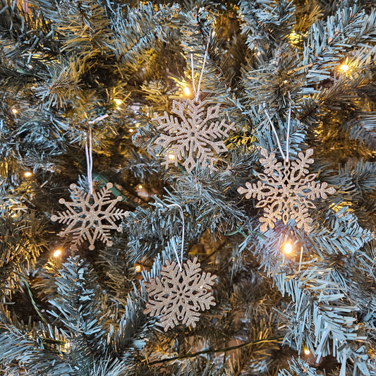 Gold Glitter Snowflake Wood Ornaments - Set of 4