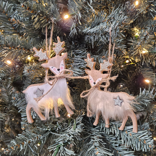 Cheerful Fluffy Reindeer Ornaments - Set of 2