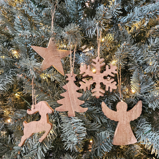 Handcrafted Mango Wood Ornaments - Choose Your Shape