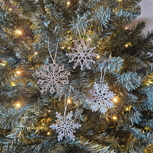 Silver Glitter Snowflake Wood Ornaments - Set of 4